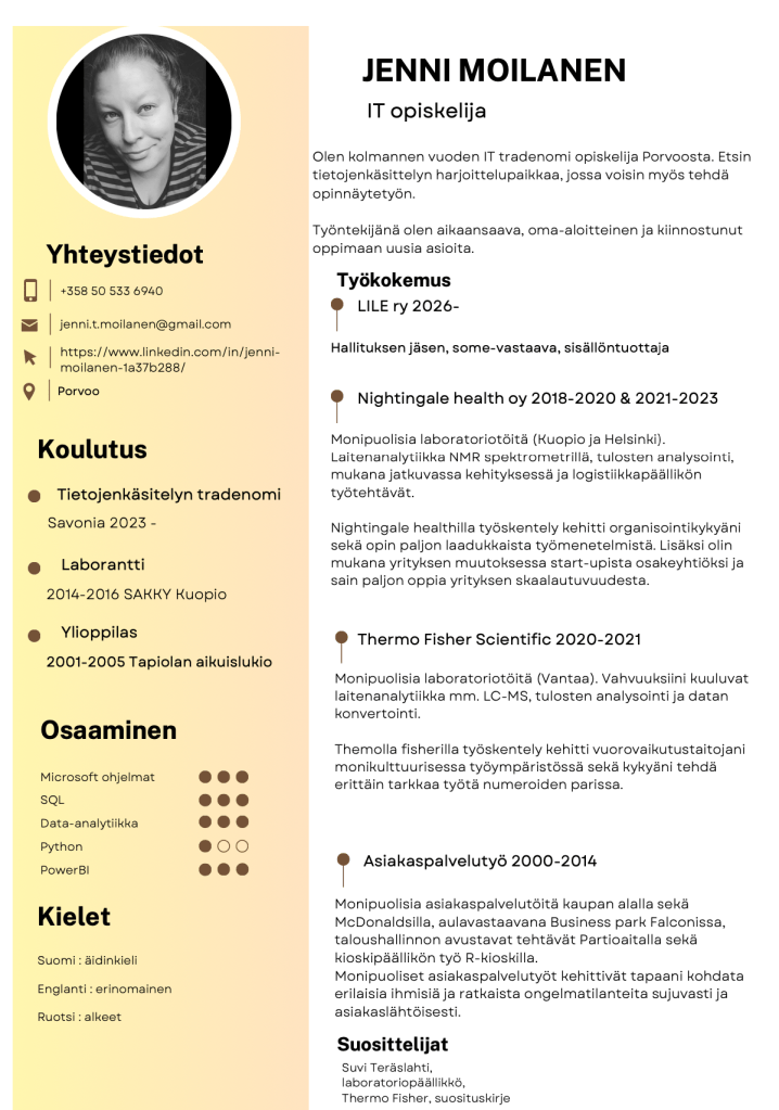 Tietojenkäsittelyn tradenomiopiskelija etsimässä harjoittelupaikkaa!